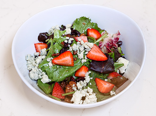 Gabriela Salad mix greens, dried cranberry, caramelized pecan, fresh strawberry, crumbled blue cheese, raspberry vinaigrette -