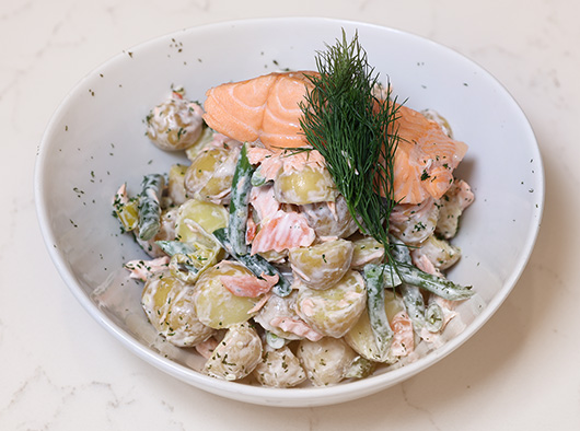 Potato & Salmon Salad green beens, peas, yellow potatoes, pickled vegetables, creamy dill dressing, poached salmon