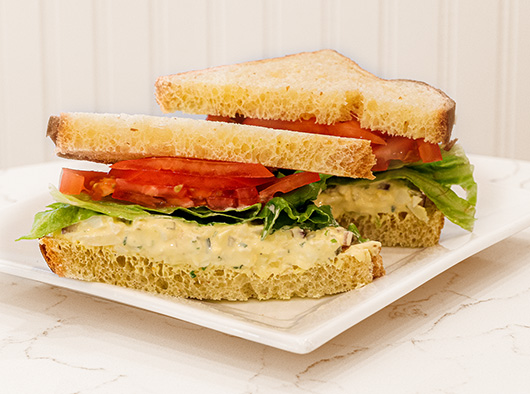 Tuna Salad on Sliced Brioche tomato, leaf lettuce -