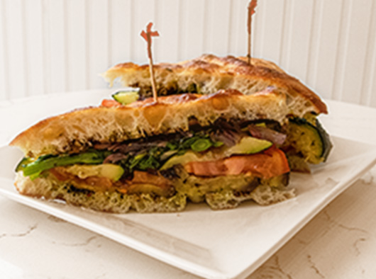Roasted Marinated Vegetables on Focaccia eggplant, zucchini, onions, tomato, balsamic reduction -