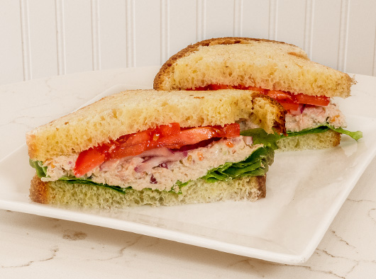 Tuna Salad on Sliced Brioche tomato, leaf lettuce -